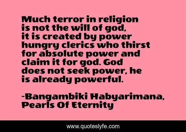 "Bangambiki Habyarimana, Pearls Of Eternity Quotes." Quoteslyfe.com, 2025. Mon. 08 Dec. 2025. <https://www.quoteslyfe.com/quote/Much-terror-in-religion-is-not-the-44564>.