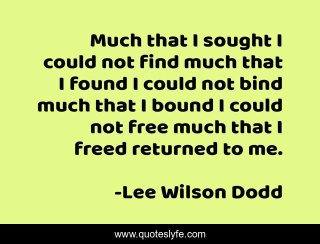 This page presents the quote "Much that I sought I could not find much that I found I could not bind much that I bound I could not free much that I freed returned to me.". Author of this quote is Lee Wilson Dodd. .