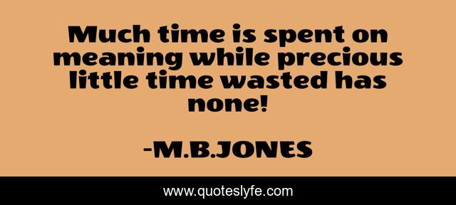 This page presents the quote "Much time is spent on meaning while precious little time wasted has none!". Author of this quote is M.B.JONES. .