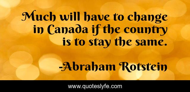 This page presents the quote "Much will have to change in Canada if the country is to stay the same.". Author of this quote is Abraham Rotstein. This quote is about canada, canadians,.