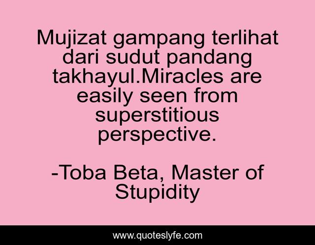 "Toba Beta, Master of Stupidity Quotes." Quoteslyfe.com, 2025. Mon. 08 Dec. 2025. <https://www.quoteslyfe.com/quote/Mujizat-gampang-terlihat-dari-sudut-pandang-takhayul-181428>.