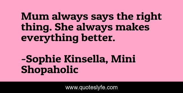 "Sophie Kinsella, Mini Shopaholic Quotes." Quoteslyfe.com, 2025. Sun. 07 Dec. 2025. <https://www.quoteslyfe.com/quote/Mum-always-says-the-right-thing-She-208053>.
