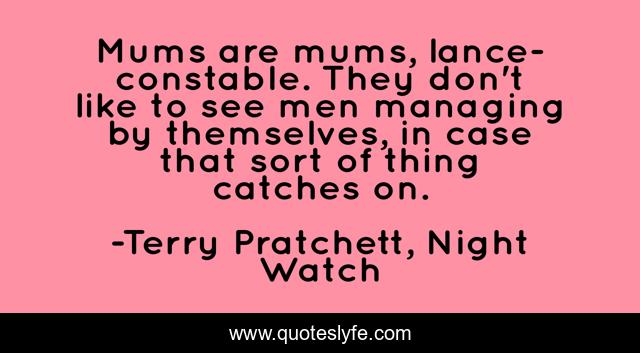 This page presents the quote "Mums are mums, lance-constable. They don't like to see men managing by themselves, in case that sort of thing catches on.". Author of this quote is Terry Pratchett, Night Watch. .