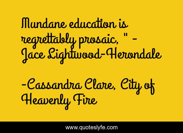 "Cassandra Clare, City of Heavenly Fire Quotes." Quoteslyfe.com, 2025. Mon. 08 Dec. 2025. <https://www.quoteslyfe.com/quote/Mundane-education-is-regrettably-prosaic-Jace-Lightwood-33755>.