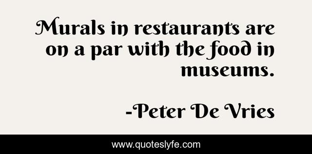 This page presents the quote "Murals in restaurants are on a par with the food in museums.". Author of this quote is Peter De Vries. This quote is about food, museums, par,.