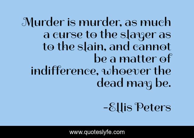 This page presents the quote "Murder is murder, as much a curse to the slayer as to the slain, and cannot be a matter of indifference, whoever the dead may be.". Author of this quote is Ellis Peters. .