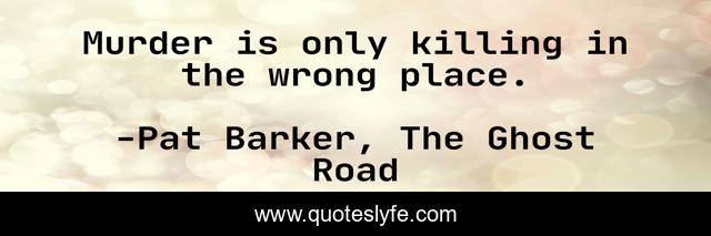 This page presents the quote "Murder is only killing in the wrong place.". Author of this quote is Pat Barker, The Ghost Road. This quote is about macabre, satire, humour,.