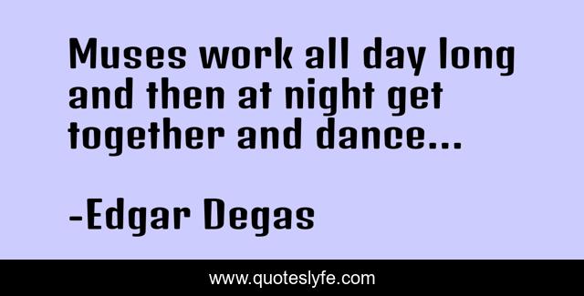 This page presents the quote "Muses work all day long and then at night get together and dance...". Author of this quote is Edgar Degas. This quote is about dance, creativity, muse, writing,.