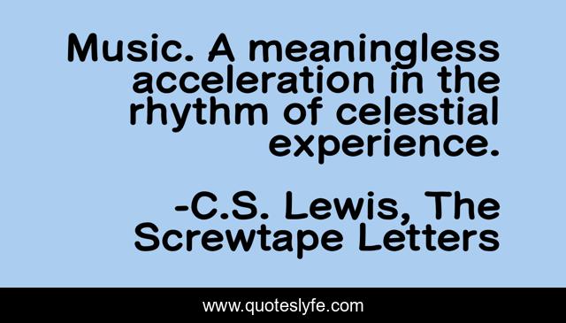 "C.S. Lewis, The Screwtape Letters Quotes." Quoteslyfe.com, 2025. Fri. 05 Dec. 2025. <https://www.quoteslyfe.com/quote/Music-A-meaningless-acceleration-in-the-rhythm-78709>.