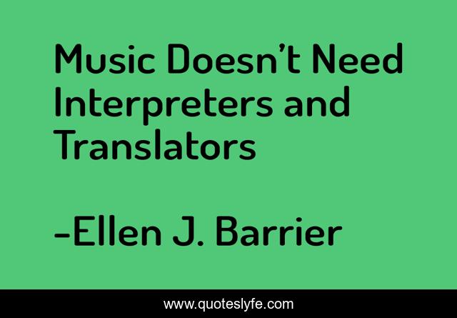 "Ellen J. Barrier Quotes." Quoteslyfe.com, 2025. Fri. 05 Dec. 2025. <https://www.quoteslyfe.com/quote/Music-Doesn-t-Need-Interpreters-and-Translators-240963>.