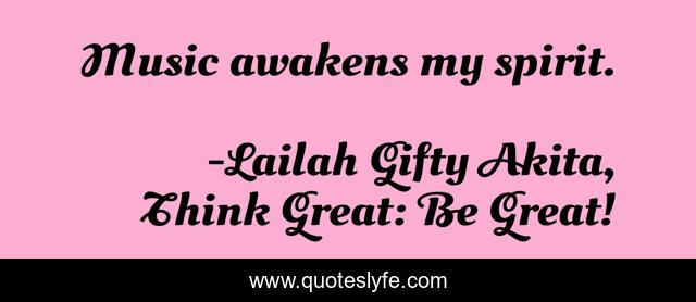 "Lailah Gifty Akita, Think Great: Be Great! Quotes." Quoteslyfe.com, 2025. Sun. 07 Dec. 2025. <https://www.quoteslyfe.com/quote/Music-awakens-my-spirit-78346>.