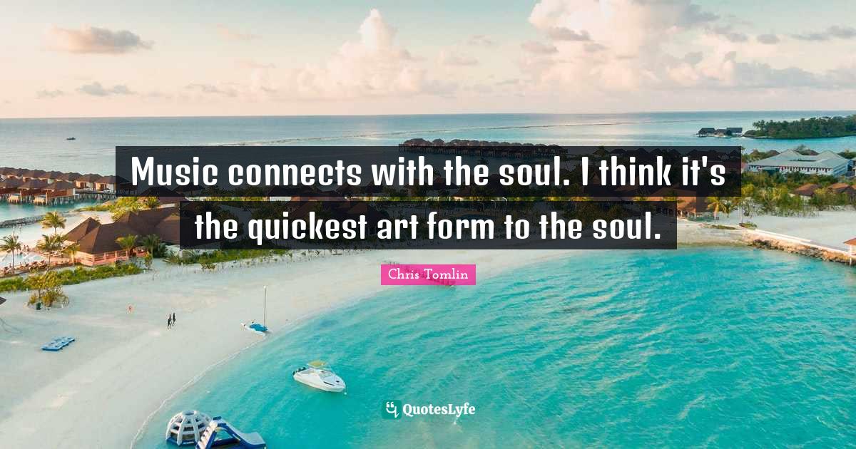 This page presents the quote "Music connects with the soul. I think it's the quickest art form to the soul.". Author of this quote is Chris Tomlin. This quote is about soul, form, thinking, art, music,.