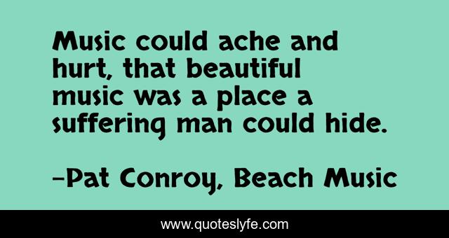 This page presents the quote "Music could ache and hurt, that beautiful music was a place a suffering man could hide.". Author of this quote is Pat Conroy, Beach Music. .