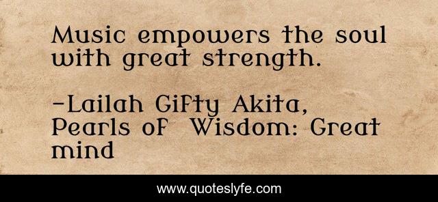 "Lailah Gifty Akita, Pearls of Wisdom: Great mind Quotes." Quoteslyfe.com, 2025. Sat. 06 Dec. 2025. <https://www.quoteslyfe.com/quote/Music-empowers-the-soul-with-great-strength-63837>.
