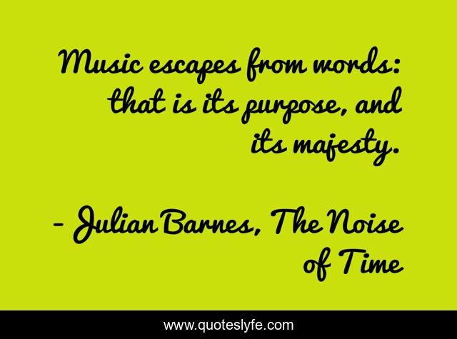 This page presents the quote "Music escapes from words: that is its purpose, and its majesty.". Author of this quote is Julian Barnes, The Noise of Time. .