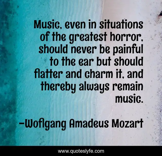 This page presents the quote "Music, even in situations of the greatest horror, should never be painful to the ear but should flatter and charm it, and thereby always remain music.". Author of this quote is Woflgang Amadeus Mozart. This quote is about music, composition, beauty,.