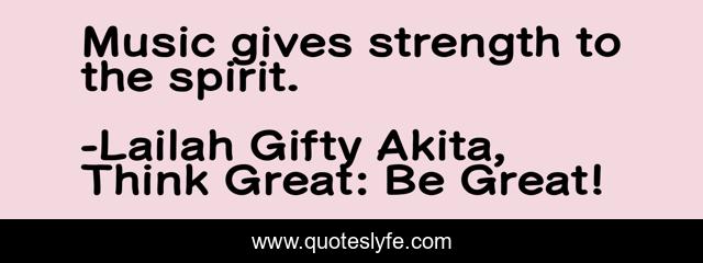 "Lailah Gifty Akita, Think Great: Be Great! Quotes." Quoteslyfe.com, 2025. Sun. 07 Dec. 2025. <https://www.quoteslyfe.com/quote/Music-gives-strength-to-the-spirit-63703>.