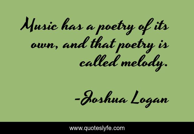 This page presents the quote "Music has a poetry of its own, and that poetry is called melody.". Author of this quote is Joshua Logan. This quote is about melody, own, music,.