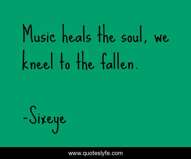 This page presents the quote "Music heals the soul, we kneel to the fallen.". Author of this quote is Sixeye. This quote is about fallen, death, music,.