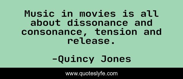 This page presents the quote "Music in movies is all about dissonance and consonance, tension and release.". Author of this quote is Quincy Jones. This quote is about release, tension, music,.