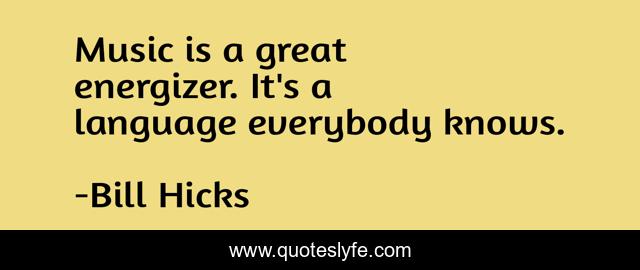 This page presents the quote "Music is a great energizer. It's a language everybody knows.". Author of this quote is Bill Hicks. This quote is about everybody, great, language,.