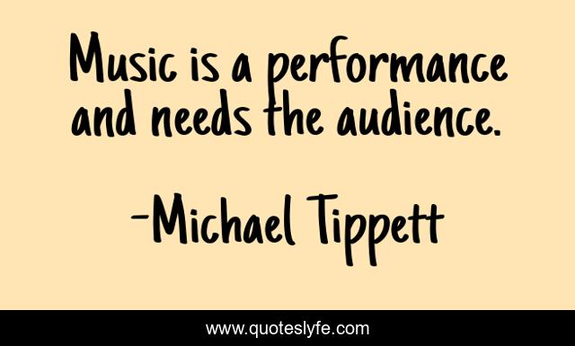 This page presents the quote "Music is a performance and needs the audience.". Author of this quote is Michael Tippett. This quote is about performance, audience, needs,.