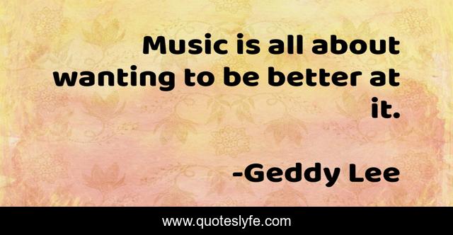 This page presents the quote "Music is all about wanting to be better at it.". Author of this quote is Geddy Lee. This quote is about better, wanting,.
