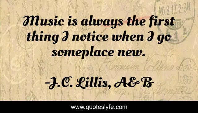 This page presents the quote "Music is always the first thing I notice when I go someplace new.". Author of this quote is J.C. Lillis, A&B. .