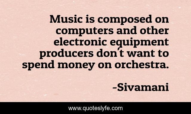 This page presents the quote "Music is composed on computers and other electronic equipment producers don't want to spend money on orchestra.". Author of this quote is Sivamani. This quote is about money, music,.