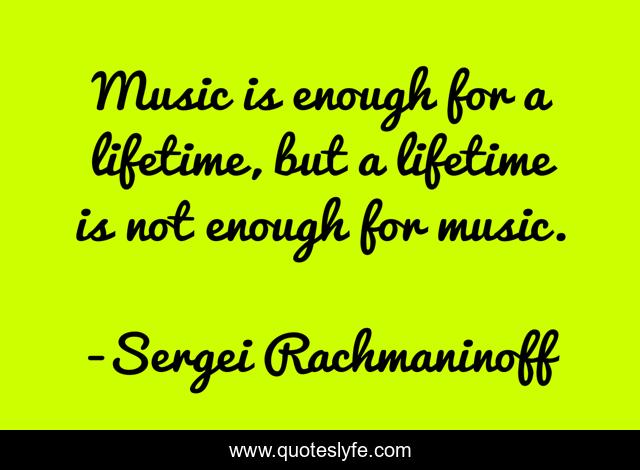 This page presents the quote "Music is enough for a lifetime, but a lifetime is not enough for music.". Author of this quote is Sergei Rachmaninoff. This quote is about life, music,.