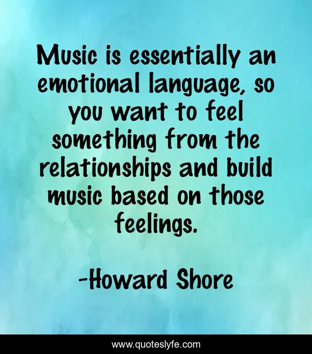 This page presents the quote "Music is essentially an emotional language, so you want to feel something from the relationships and build music based on those feelings.". Author of this quote is Howard Shore. This quote is about relationships, language,.