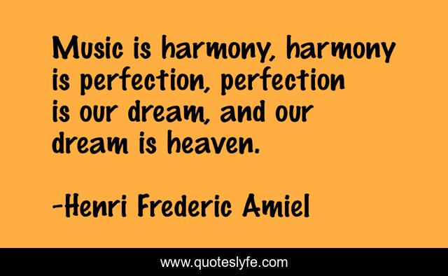 This page presents the quote "Music is harmony, harmony is perfection, perfection is our dream, and our dream is heaven.". Author of this quote is Henri Frederic Amiel. This quote is about dream, perfection, harmony,.