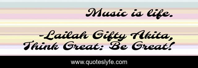 "Lailah Gifty Akita, Think Great: Be Great! Quotes." Quoteslyfe.com, 2025. Tue. 09 Dec. 2025. <https://www.quoteslyfe.com/quote/Music-is-life-79626>.