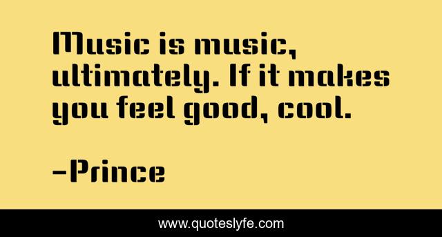This page presents the quote "Music is music, ultimately. If it makes you feel good, cool.". Author of this quote is Prince. This quote is about feel good, good, music,.