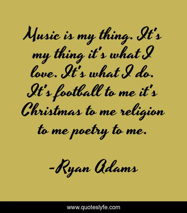 This page presents the quote "Music is my thing. It's my thing it's what I love. It's what I do. It's football to me it's Christmas to me religion to me poetry to me.". Author of this quote is Ryan Adams. This quote is about love, football, music, affection,.