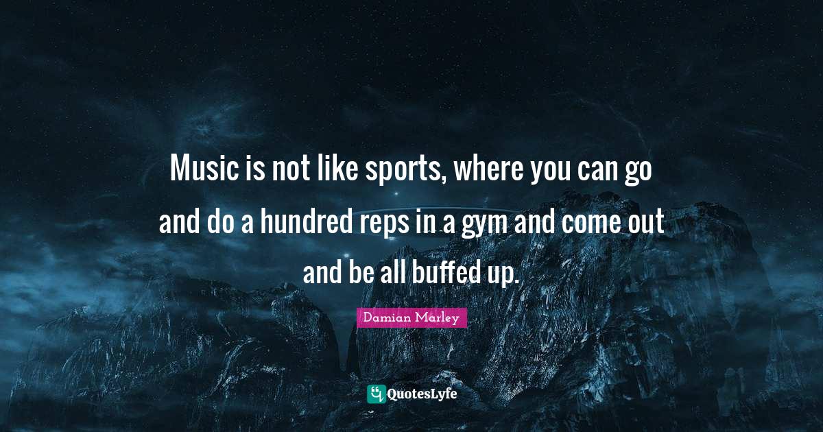 This page presents the quote "Music is not like sports, where you can go and do a hundred reps in a gym and come out and be all buffed up.". Author of this quote is Damian Marley. This quote is about sports, hundred, gym, music is,.
