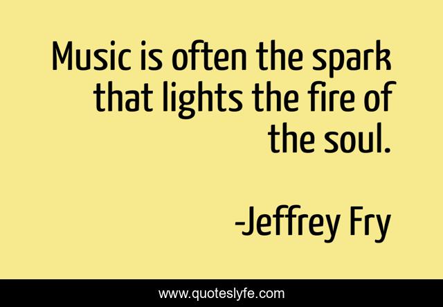 This page presents the quote "Music is often the spark that lights the fire of the soul.". Author of this quote is Jeffrey Fry. This quote is about often, fire, soul, lights, music, spark,.