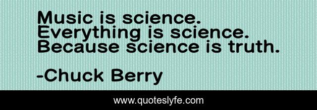 This page presents the quote "Music is science. Everything is science. Because science is truth.". Author of this quote is Chuck Berry. This quote is about everything, music, truth,.