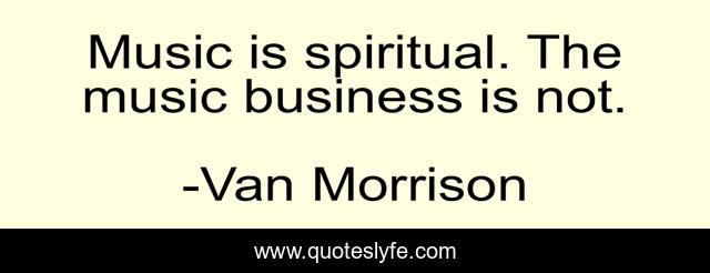 This page presents the quote "Music is spiritual. The music business is not.". Author of this quote is Van Morrison. .