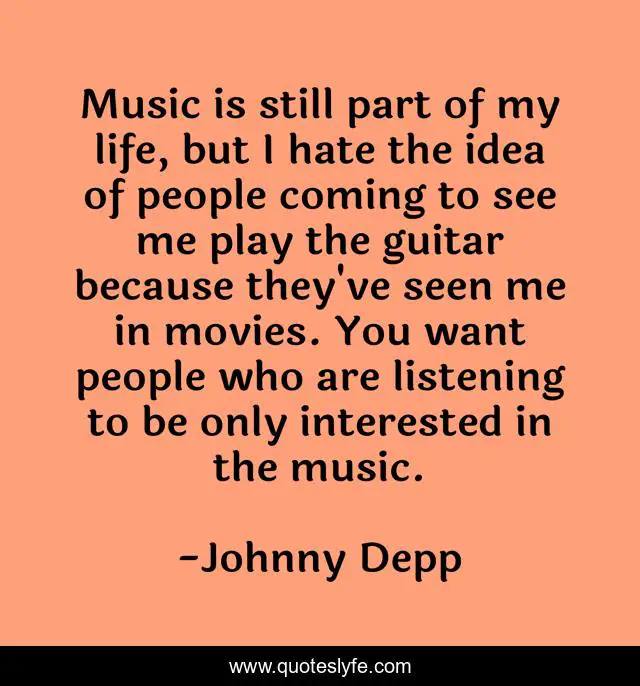 This page presents the quote "Music is still part of my life, but I hate the idea of people coming to see me play the guitar because they've seen me in movies. You want people who are listening to be only interested in the music.". Author of this quote is Johnny Depp. This quote is about music, life, hate,.