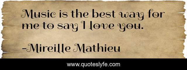 This page presents the quote "Music is the best way for me to say I love you.". Author of this quote is Mireille Mathieu. This quote is about i love you, love, best, affection,.