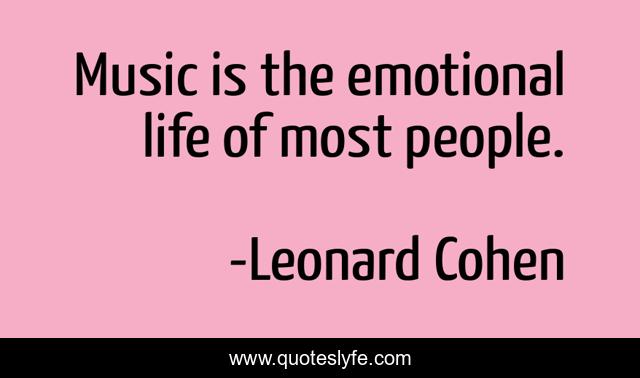 This page presents the quote "Music is the emotional life of most people.". Author of this quote is Leonard Cohen. This quote is about emotional, life, people,.