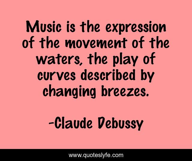 This page presents the quote "Music is the expression of the movement of the waters, the play of curves described by changing breezes.". Author of this quote is Claude Debussy. This quote is about changing, play, curves,.