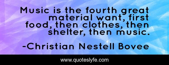 "Christian Nestell Bovee Quotes." Quoteslyfe.com, 2025. Mon. 08 Dec. 2025. <https://www.quoteslyfe.com/quote/Music-is-the-fourth-great-material-want-296454>.