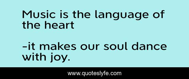 This page presents the quote "Music is the language of the heart". Author of this quote is it makes our soul dance with joy.. .