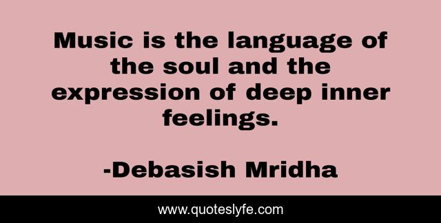 This page presents the quote "Music is the language of the soul and the expression of deep inner feelings.". Author of this quote is Debasish Mridha. This quote is about miraboli, oscar-wilde, philosophy, debasish-mridha, language-of-the-soul, quotes, music, debasish-mridha-md, inspirational,.