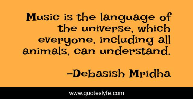 This page presents the quote "Music is the language of the universe, which everyone, including all animals, can understand.". Author of this quote is Debasish Mridha. This quote is about love, life, everyone, animals, knowledge, language, inspirational, intelligence, philosophy,.