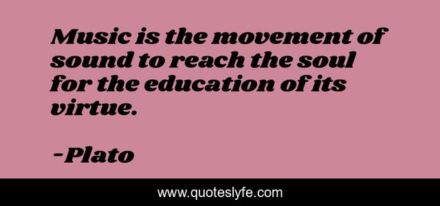 This page presents the quote "Music is the movement of sound to reach the soul for the education of its virtue.". Author of this quote is Plato. This quote is about education, reach, soul,.