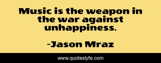 This page presents the quote "Music is the weapon in the war against unhappiness.". Author of this quote is Jason Mraz. .