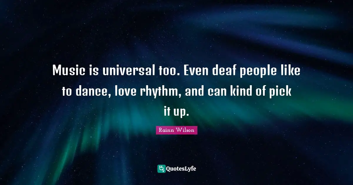 This page presents the quote "Music is universal too. Even deaf people like to dance, love rhythm, and can kind of pick it up.". Author of this quote is Rainn Wilson. This quote is about love, deaf, music is, rhythm, dance, people, inspirational, universal, kind,.